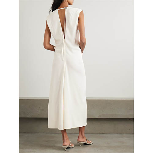 Etiquetas calientes: Vestido midi marfil sin mangas con escote en V pronunciado