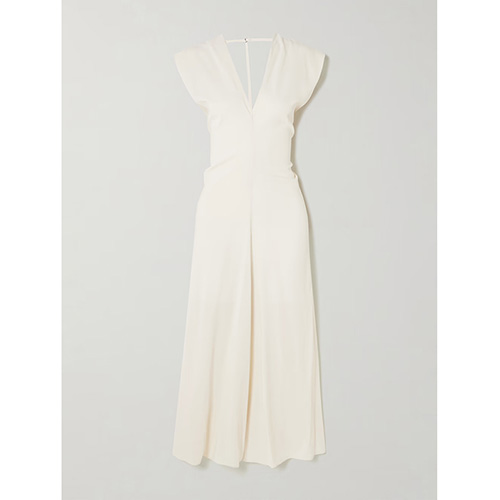 Vestido midi entallado marfil sin mangas con escote en V profundo
